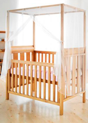 En protégeant le lit ou le berceau, comme à titre d’exemple dans